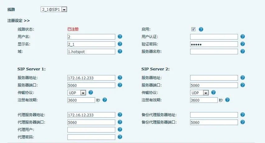 The hotspot server can work without SIP registration while distributing extensions. Number and Server fields are mandatory in this mode.